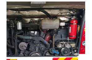Engine compartments of buses are more prone to fire than other enclosures due to the following: short circuit, engine wear, hot surfaces, reduced durability of materials, use of plastics, encapsulation of the angie, oil, and debris. It is not surprising that more than 70% of all bus fires occur in the engine compartment. Since buses are used for every day transport of people, the fire protection of buses should be top priority of every bus operator or manufacturer.
